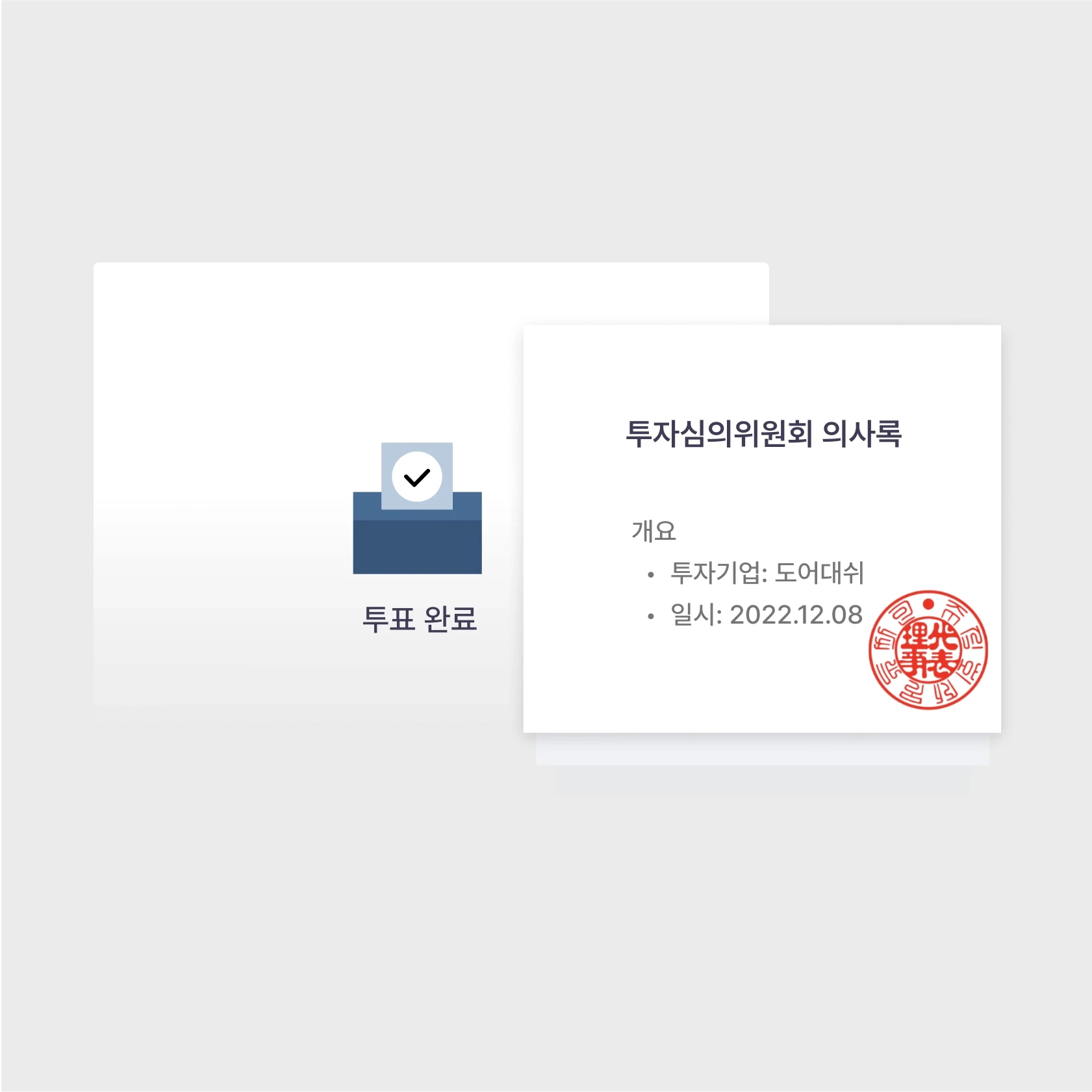 온라인으로 투심위 자료 수신 및 투표 시 의사록까지 자동 생성